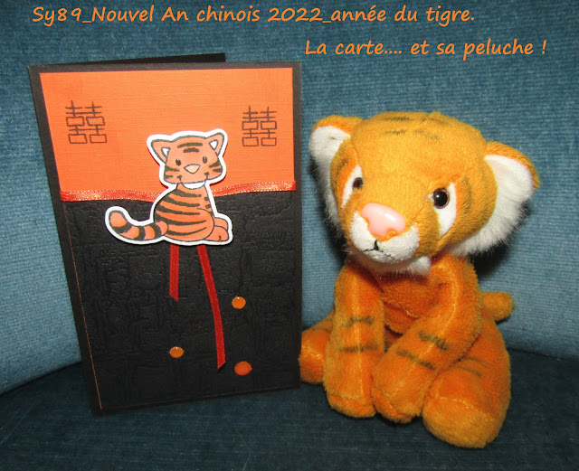 Et une que je lui ai fait parvenir chez elle (ça tombait un dimanche, elle l'a reçu pile à temps le samedi, avec interdiction d'ouvrir les enveloppes avant le jour J !) juste de ma part, avec même un kirigami dedans (ça faisait longtemps que je n'en avais pas fait ; alors quand j'ai imprimé celui des abeilles (présenté dimanche dernier), j'en ai profité pour sortir aussi celui-ci, assorti à la face avant de ma carte .